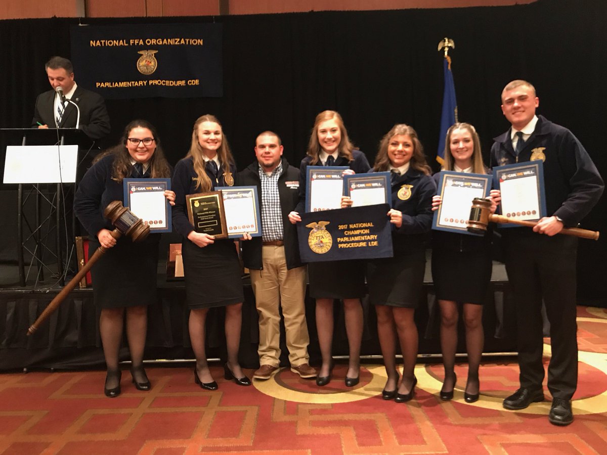 The mission of FFA is to make a positive difference in the lives of students by developing their potential for premier leadership, personal growth and career success through agricultural education. With that mission in mind, it makes perfect sense that parliamentary procedure is one of the many events that FFA members can participate. The purpose of the Parliamentary Procedure LDE is "to encourage students to learn to effectively participate in a business meeting and to assist in the development of their leadership, research, problem solving skills and critical thinking skills."